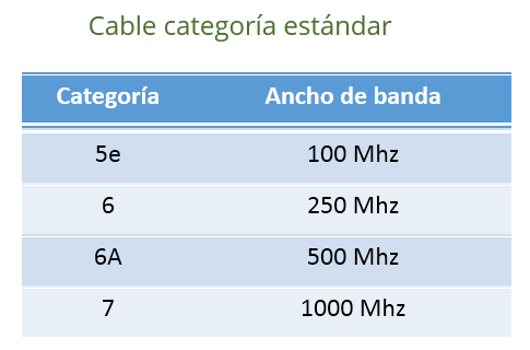 En esta tabla podemos exhortar, que desde el cable categoría 6A, se cumple con el requerimiento de ancho de banda. Garantizando una imagen estable y de gran calidad.