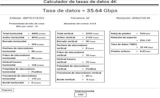 Se va a realizar la instalación de un sistema de video 4k, frecuencia 60hz, profundidad de bit 16, muestreo croma 4:4:4, con las siguientes características a 40 metros: la imagen siguiente nos muestra las características de esta señal.